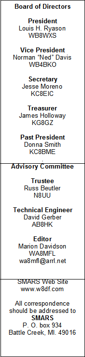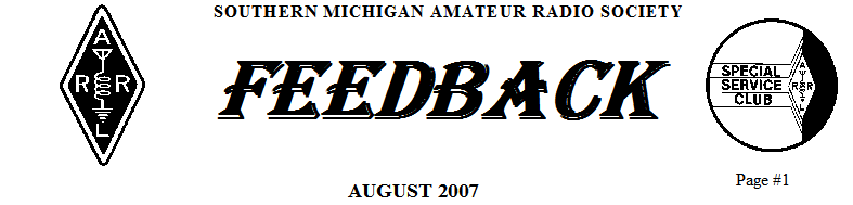 W. Wallace Murray KE8HR, the ARRL Michigan Technical Coordinator, will be our guest speaker at the August 16, 2007 SMARS meeting. He will be lecturing on several topics that are of interest to many of us It sounds like this will be an interesting and informative meeting. We hope all members can attend.